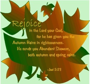 God said, “Fear not. Be glad and rejoice!” That is a refrain we read in this passage from the prophet Joel. Fear not. Be glad and rejoice. There is a cause for praise – a cause for thanksgiving. Pastures are green. Trees bear fruit. Vines give their full yield. This abundance should lead the people to praise. The children of God ought to be glad and rejoice. God had poured down on them abundant rain. It was a time of praise and thanksgiving.
